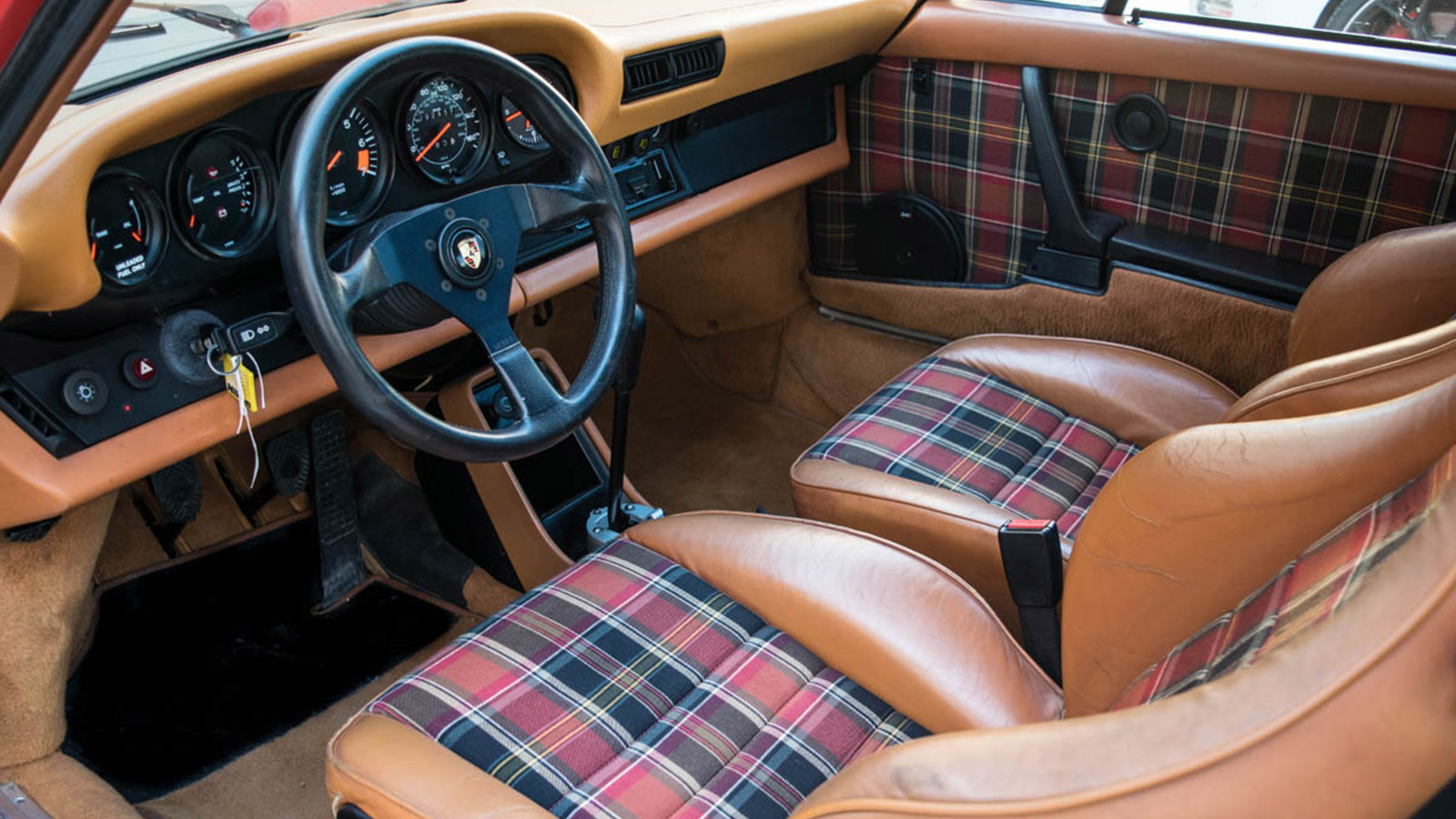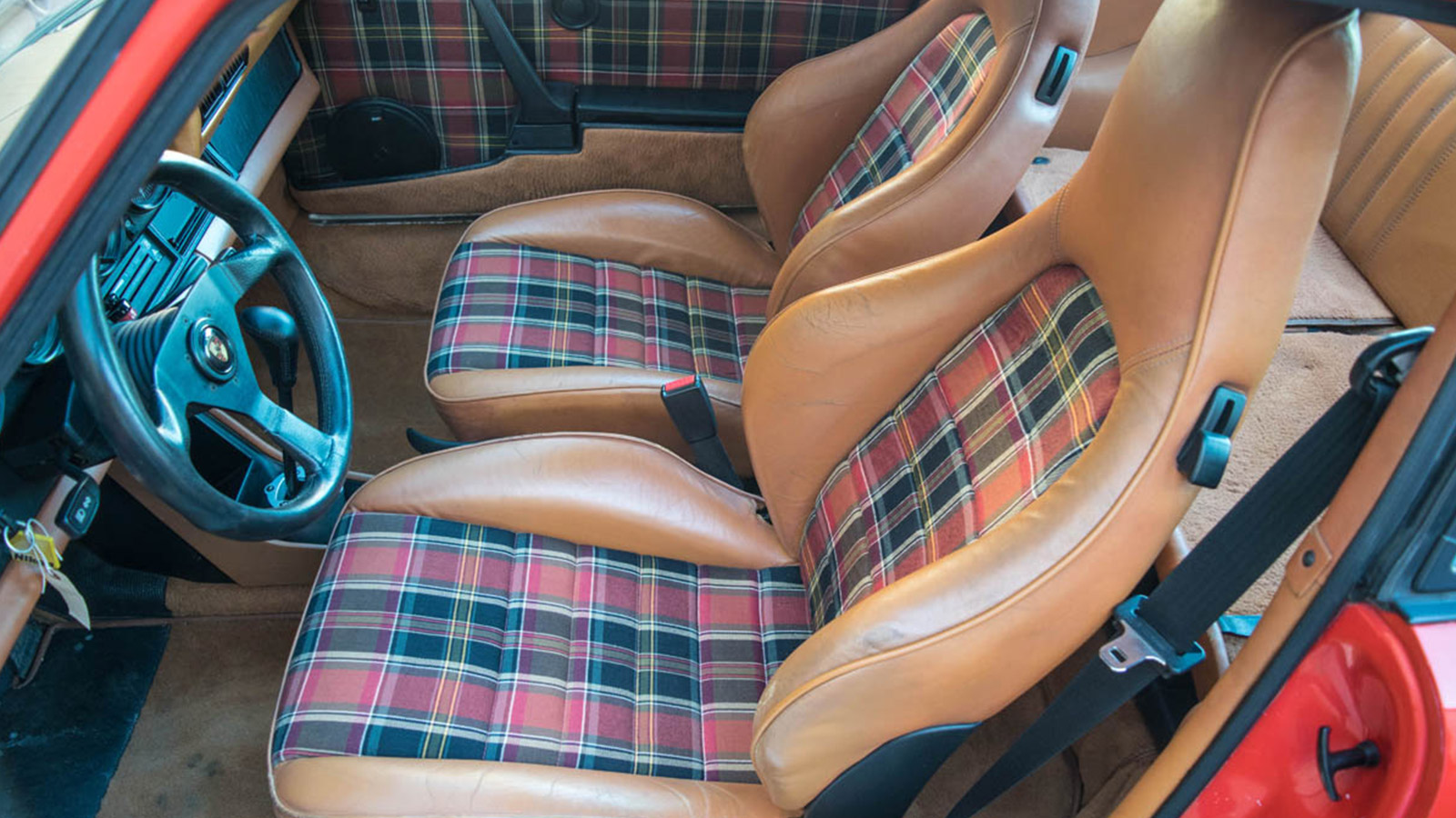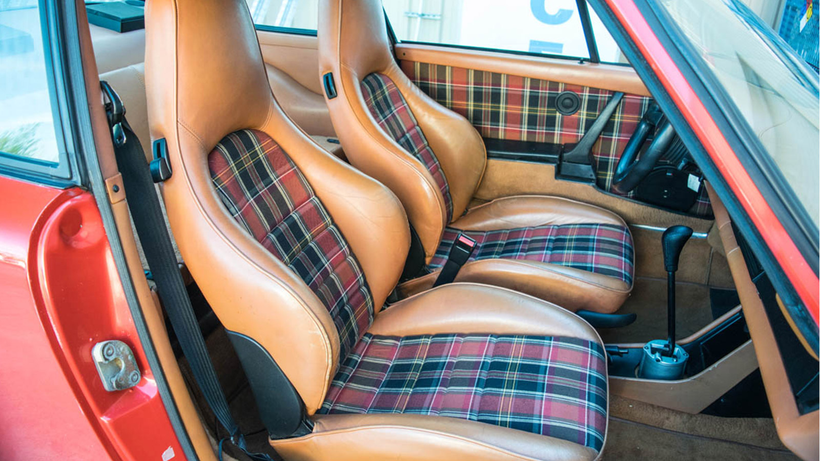 This 1983 911 SC comes in Guards Red over Cork. We have records on the car for up to 30 years starting in 1988 to 2014. The car was in Missouri and Colorado for most of its life. This driver 911 runs and performs great. The last major service was completed in August of 2014. The interim service has been done. The car has received interior updates; the sport seats were customized with Tartan inserts. 17″ Gold Fuchs. SSI Muffler two in, two out. Wevo Shifter installed.