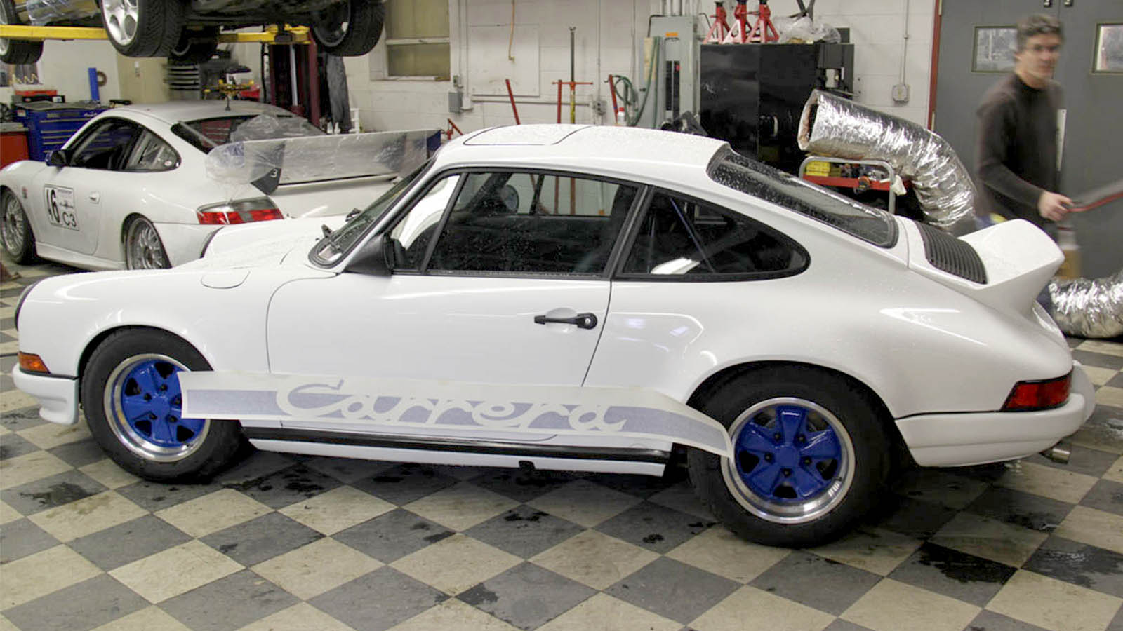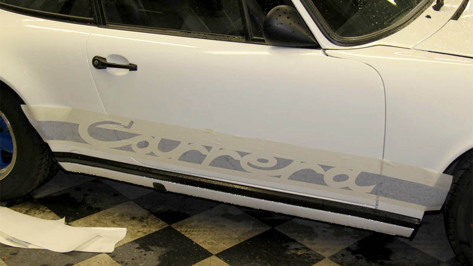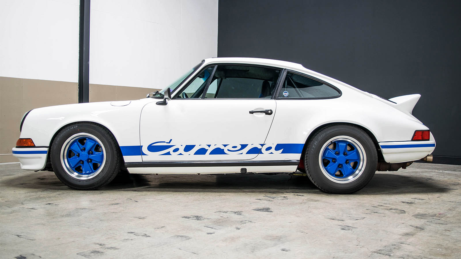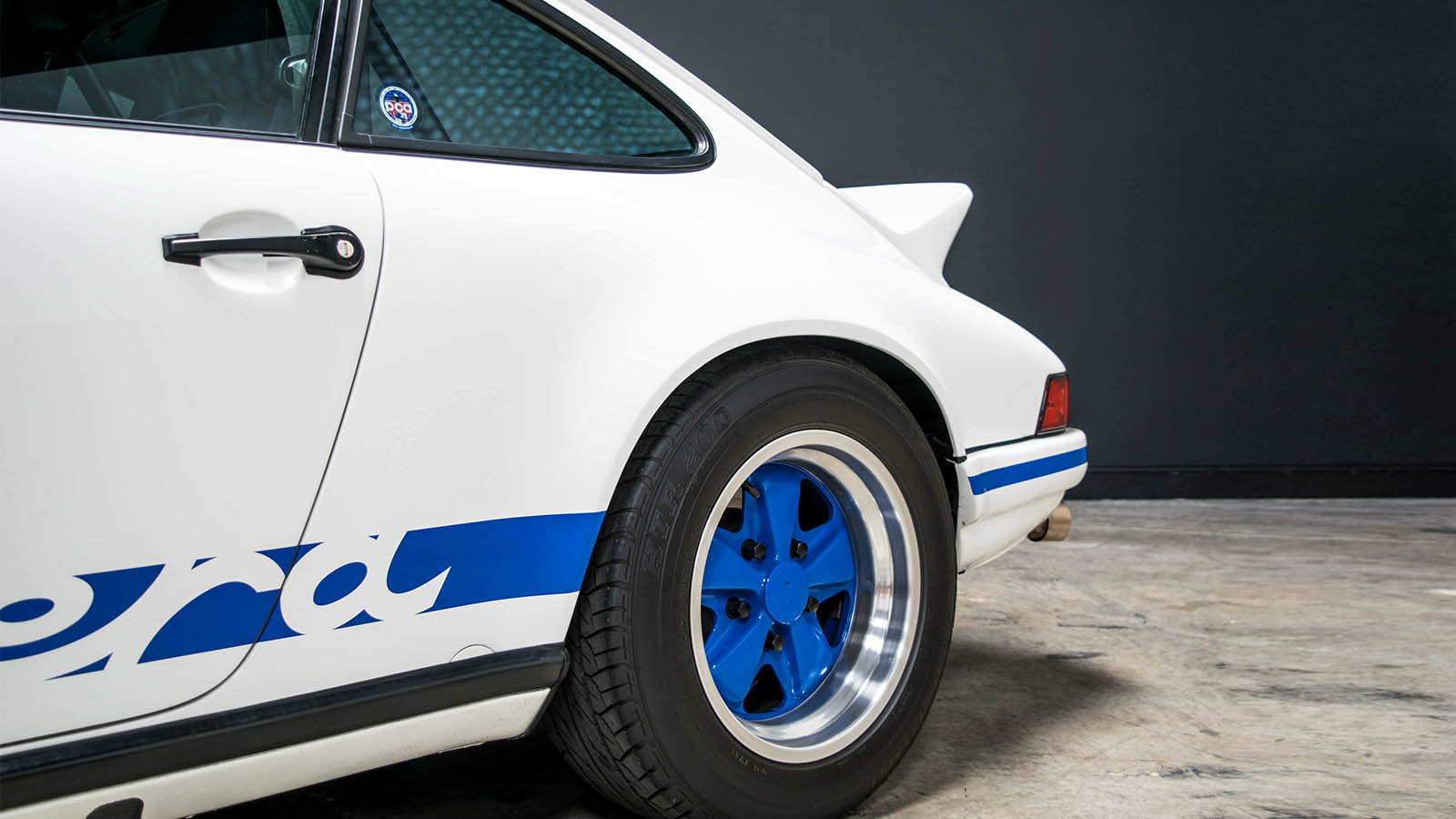 - Paint color is RS correct Porsche Grand Prix White with blue trim and lettering.
