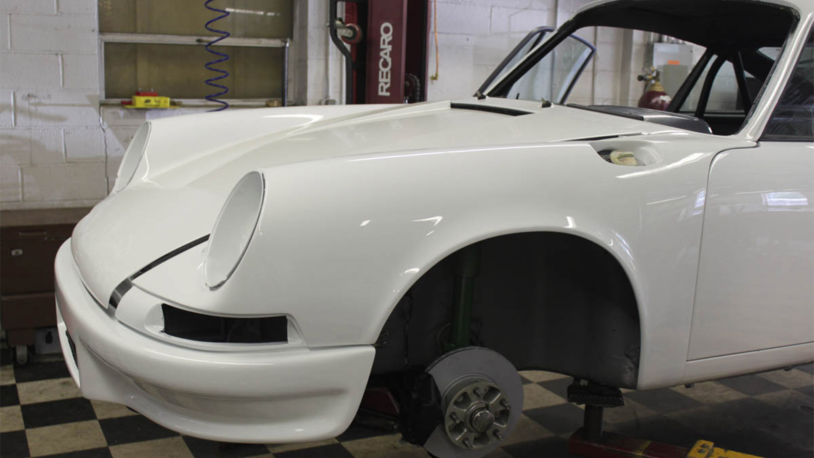 - White composite fenders, long nose hood, front bumper, rear bumper and Ducktail.