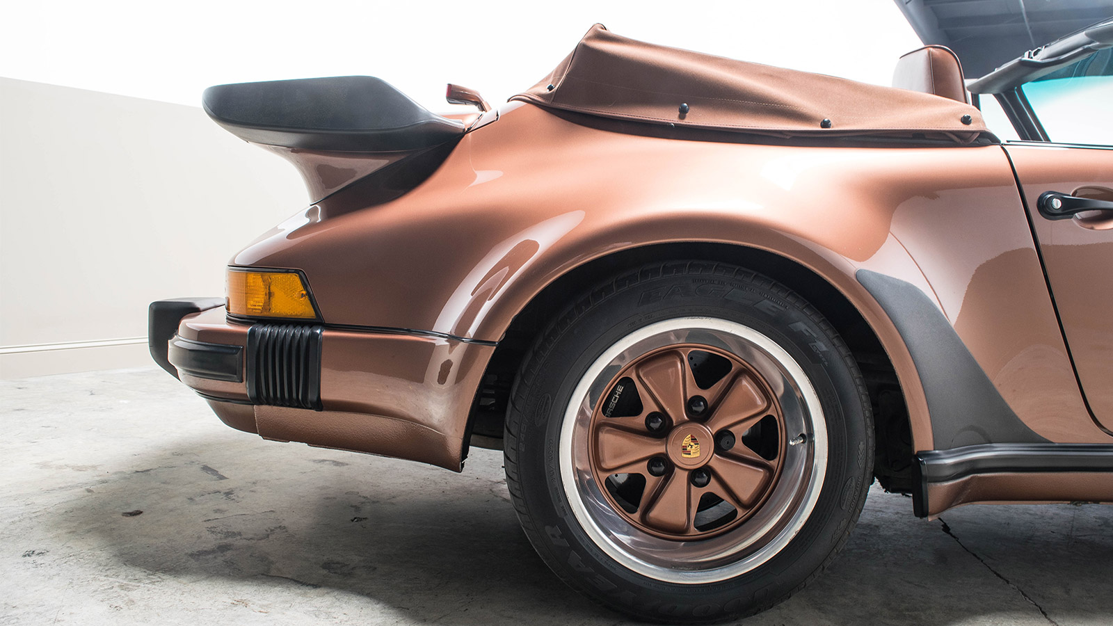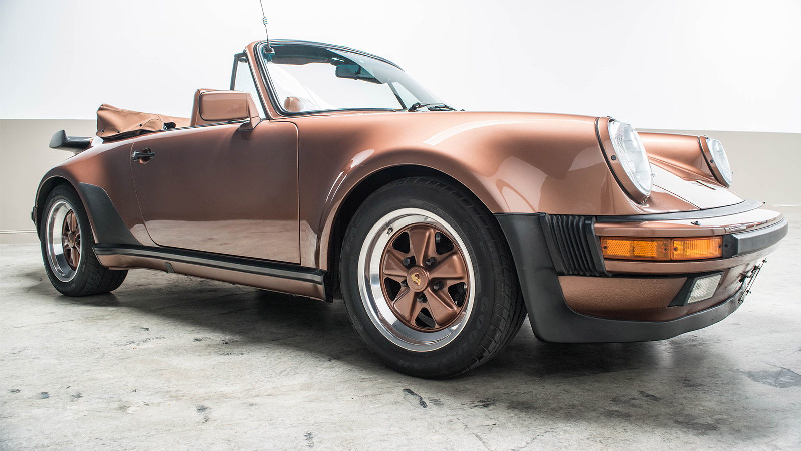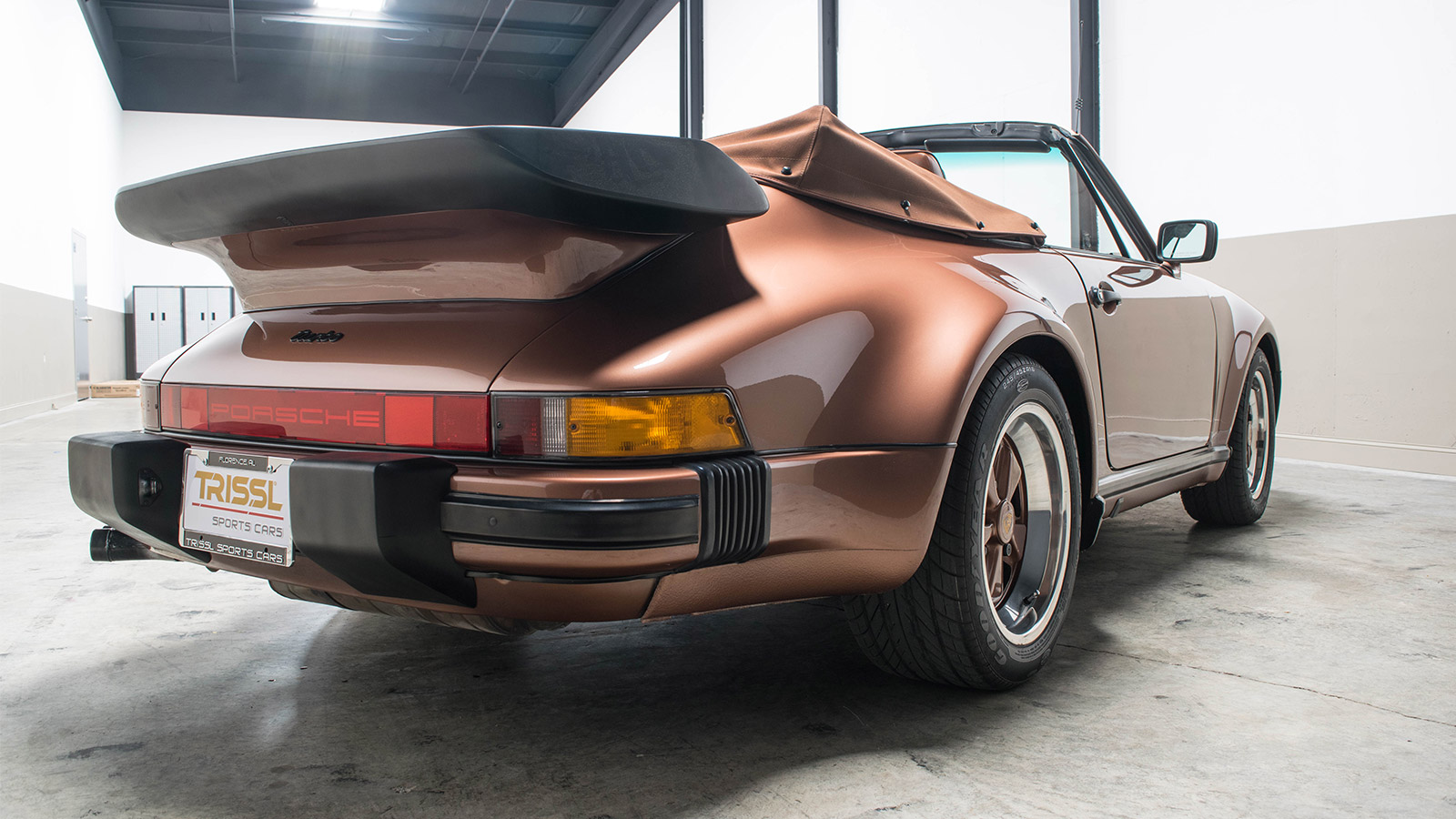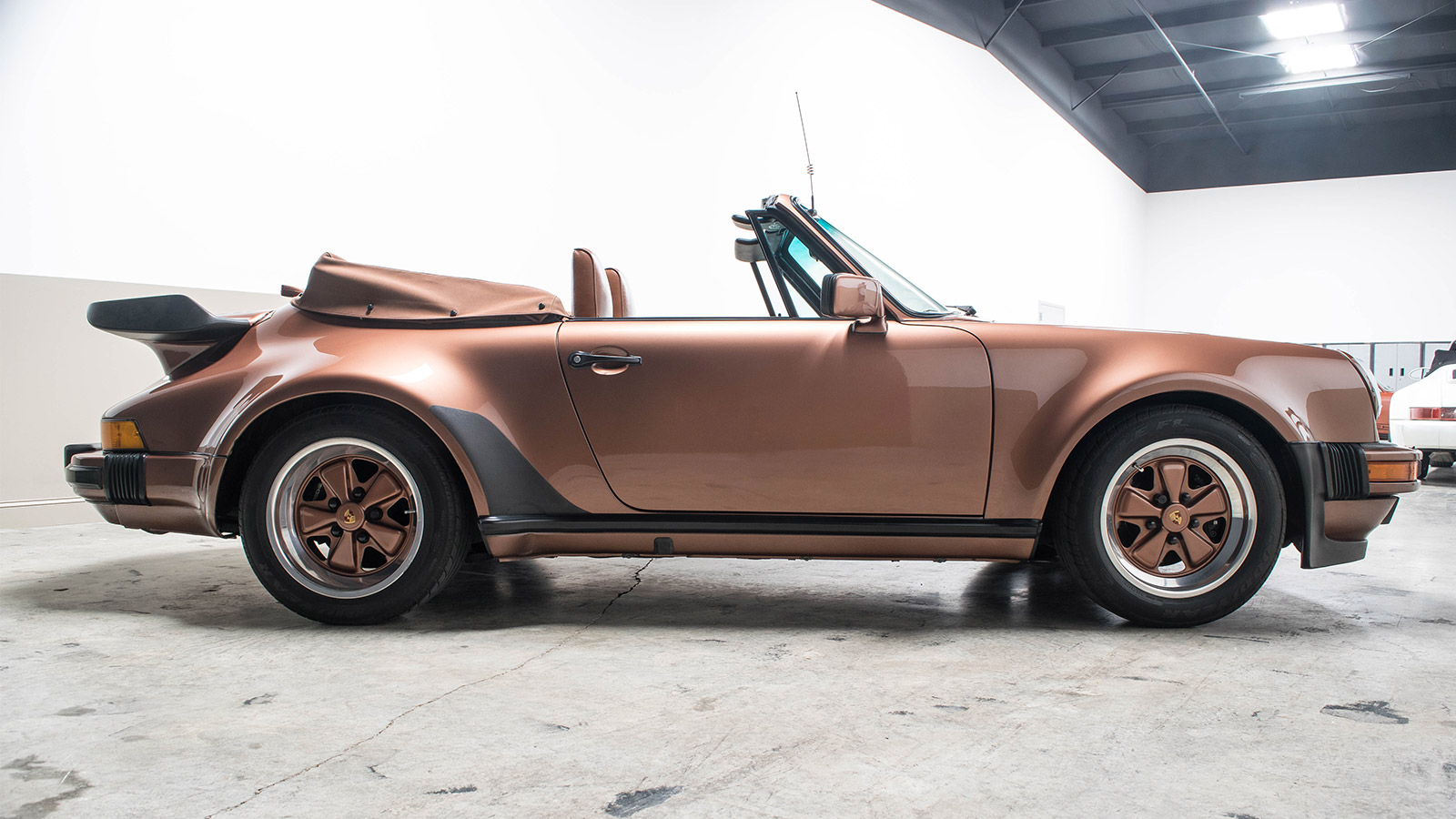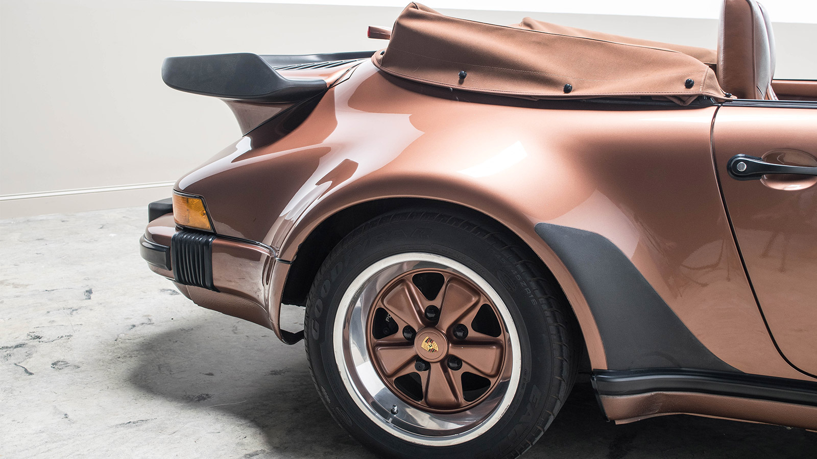 1989 Porsche Turbo Cabriolet. 29700 miles. 1 owner car, bought in California @ Pacific Valley MotorCars and taken to NV. Window sticker, books, records, jack, tools, and air pump. Cognac brown Metallic, Mahogany full, matching Fuch’s wheels