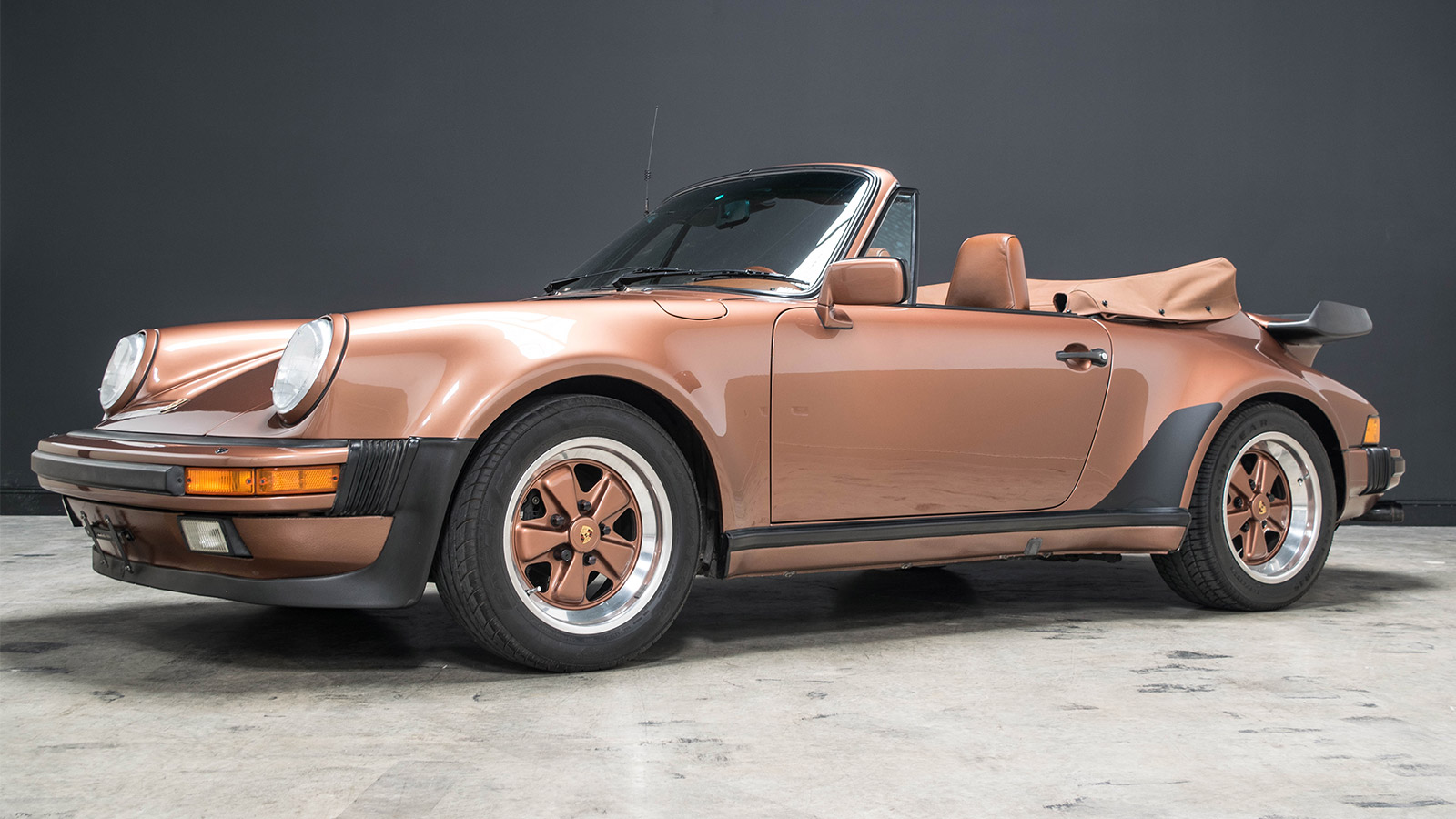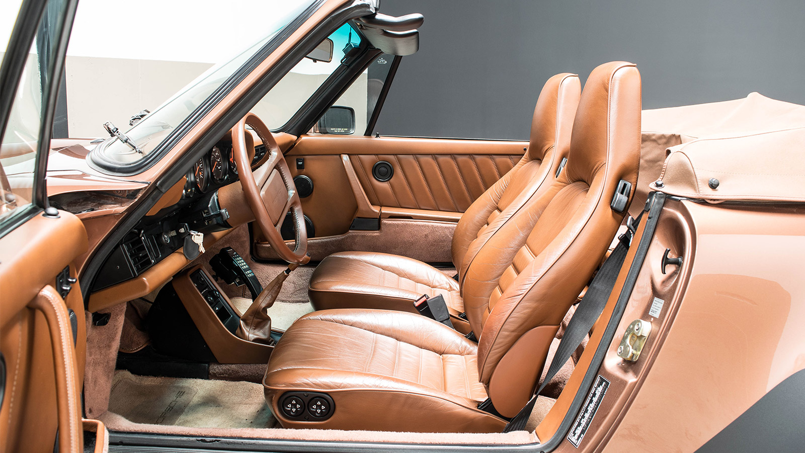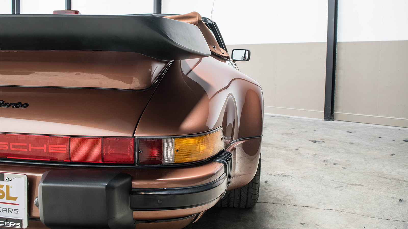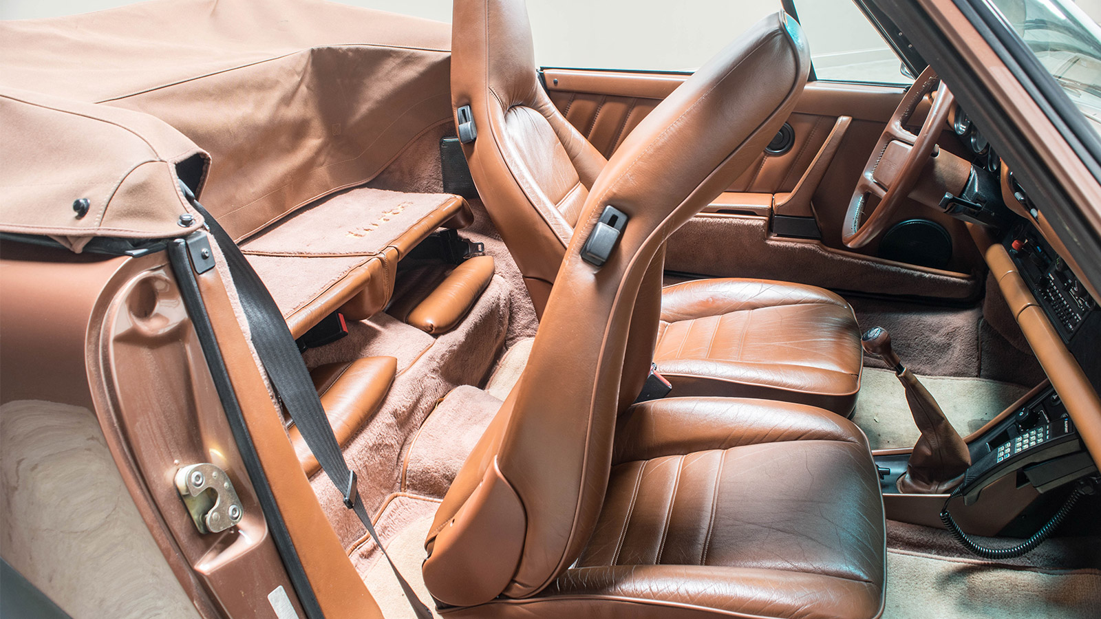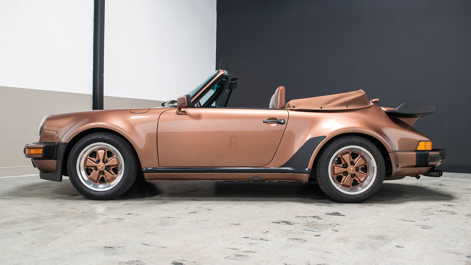 1989 Porsche Turbo Cabriolet. 29700 miles. 1 owner car, bought in California @ Pacific Valley MotorCars and taken to NV. Window sticker, books, records, jack, tools, and air pump. Cognac brown Metallic, Mahogany full, matching Fuch’s wheels