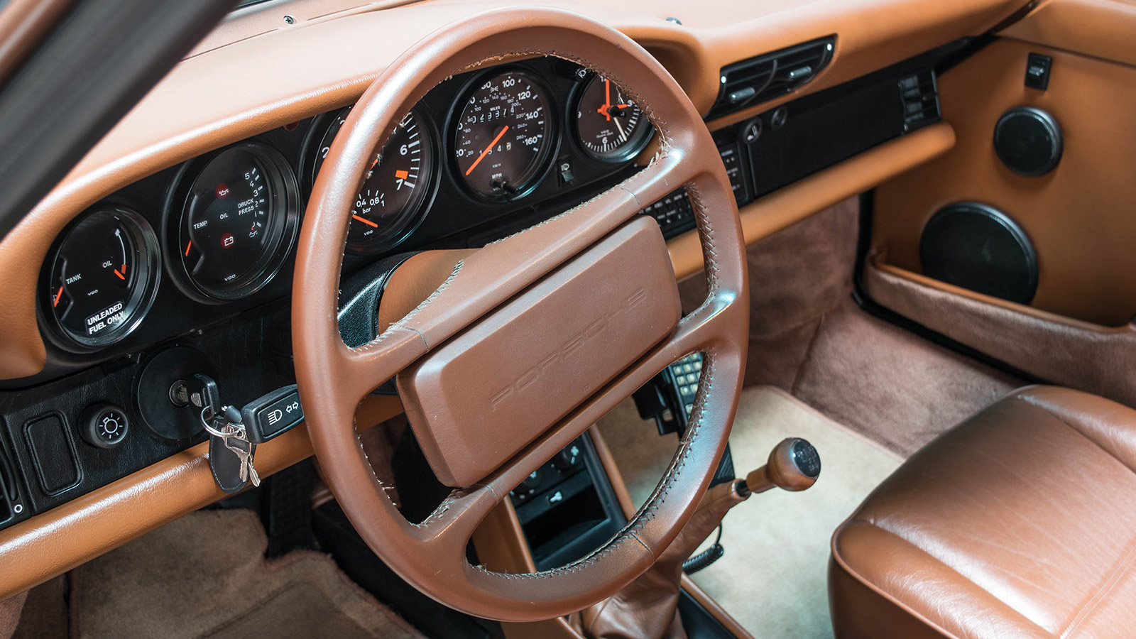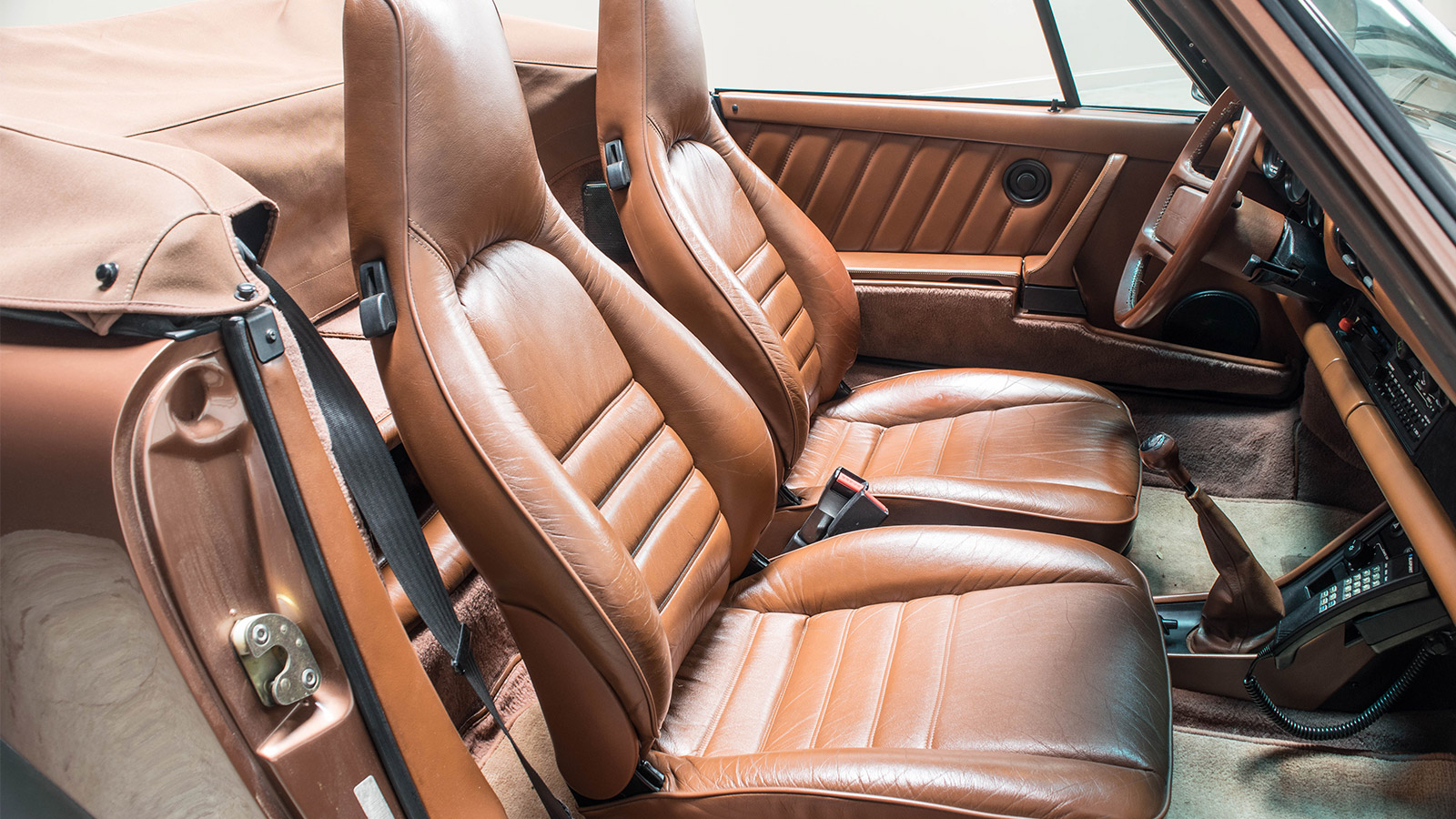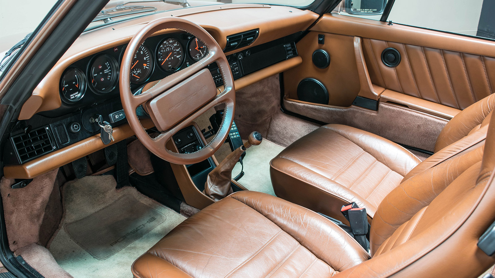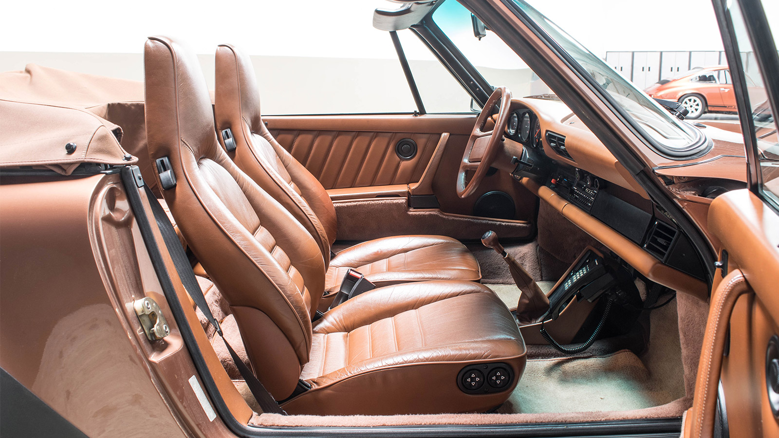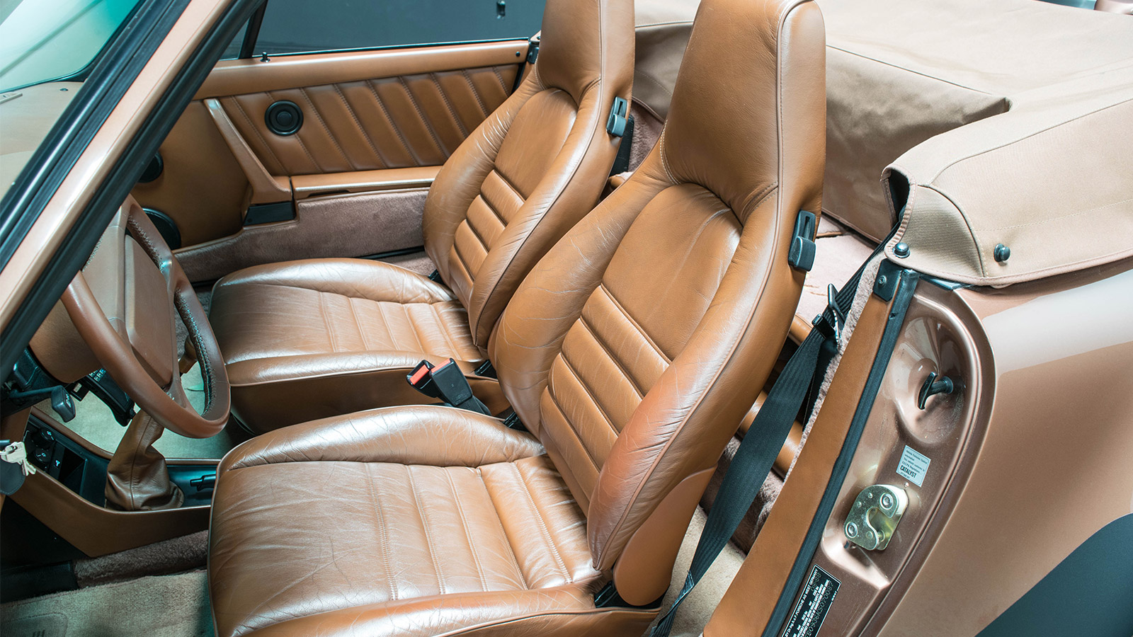1989 Porsche Turbo Cabriolet. 29700 miles. 1 owner car, bought in California @ Pacific Valley MotorCars and taken to NV. Window sticker, books, records, jack, tools, and air pump. Cognac brown Metallic, Mahogany full, matching Fuch’s wheels