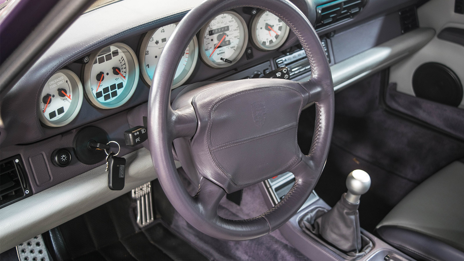 With only 43k original miles, this 911 shows like new inside and out. The exterior is nearly perfect and is a factory “paint to sample” color (Amaranth Violet) as seen on the Certificate of Authenticity. The hood, bumper, rocker panels and fenders had had a clear film on them from before the first owner bought the car in 2002 (with about 14K miles on it). He replaced the clear film about two years ago and also replaced the factory film in front of the rear wheels at that time.