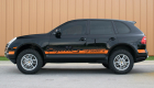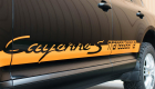 To honor their victories, Porsche took the wraps off a unique model they had been developing in Weissach, Germany, the Cayenne TransSyberia. Fitted with air suspension and Porsche’s Active Suspension Management (PASM) that adjusts the shock absorbers for a variety of terrain, the TransSyberia entered the market with Rally like advances. It touted a permanent, AWD system that sends sixty-two percent of the torque rearward. BF Goodrich 265/65 R18 tires elevate the Cayenne to withstand varying terrain elevations. A 4.5-liter V-8 with 405 bhp paired with a six-speed Tiptronic delivered a low 4.11: 1 final drive ratio. Standard front and rear skid plates, made of stainless steel, protect the Cayenne’s underbody. An off-road package was available which included a variable locking rear differential, rock rails, a reinforced engine-bay guard and additional protection for the fuel tank and rear axle. For those looking to enhance the rugged, off-road aesthetics, graphic decals and roof lights were an option on models not equipped with a moonroof.